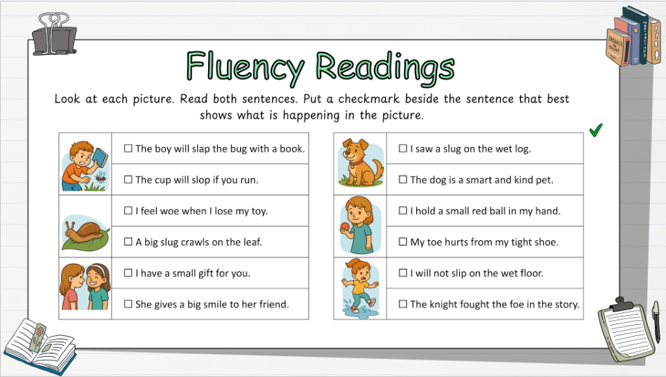 - Reading Strategies: Retell, Predicting Meaning Using Pictures, Monitoring
