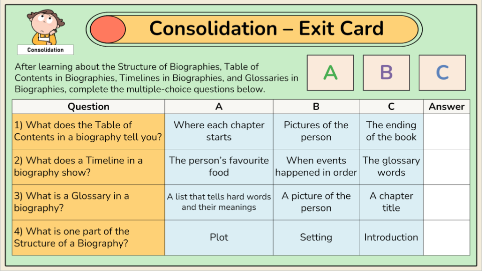 - Graphic texts – timelines, comics, diagrams, infographics, maps