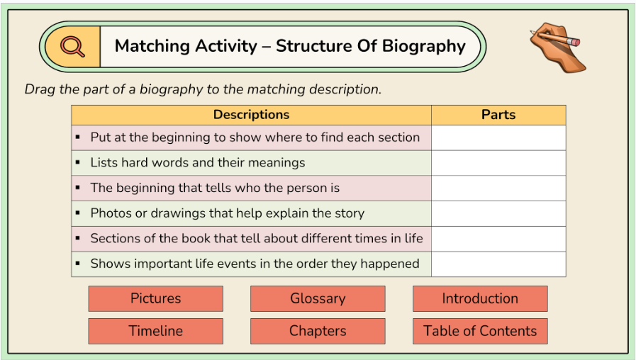- Graphic texts – timelines, comics, diagrams, infographics, maps