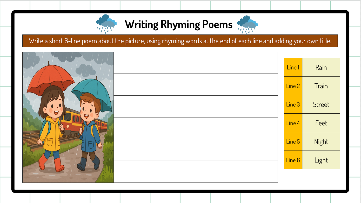 - Poetry Writing: Acrostic, haiku, limericks