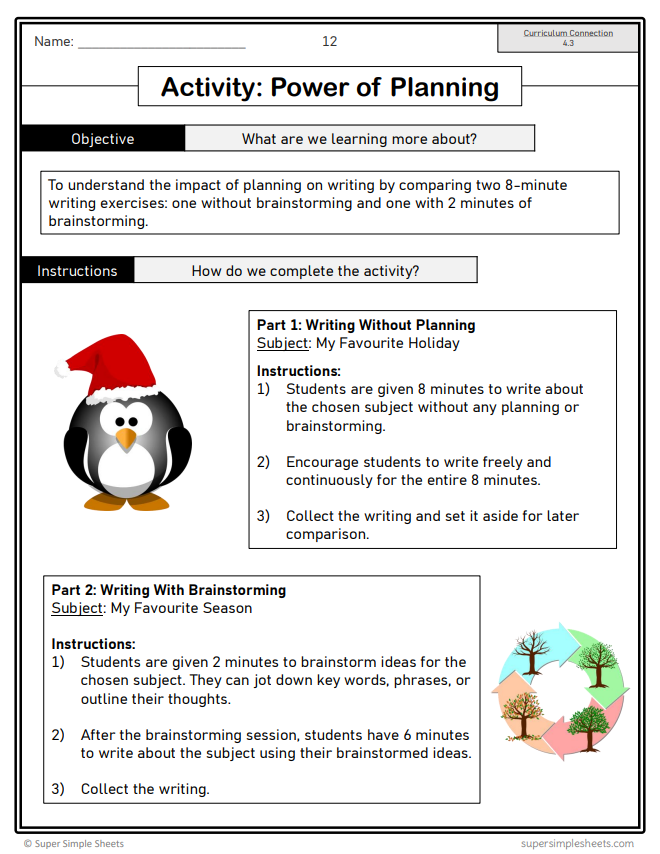 - Metacognitive Strategies: Writing goals, writing tracking sheet