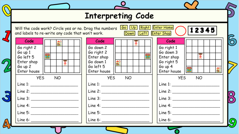 - Hands-on Activities: Pattern Treasure Hunt, Finger Signals Quiz - Doubling Patterns, Algebra Jeopardy, Balancing Act, Card Sort Challenge, Matching Game: Do The Equations Match, Task Cards: Mystery Number Detectives, Equation Explorers, Coding Activity – Fossils, Robot Teacher, Human Robot - Concurrent Events.