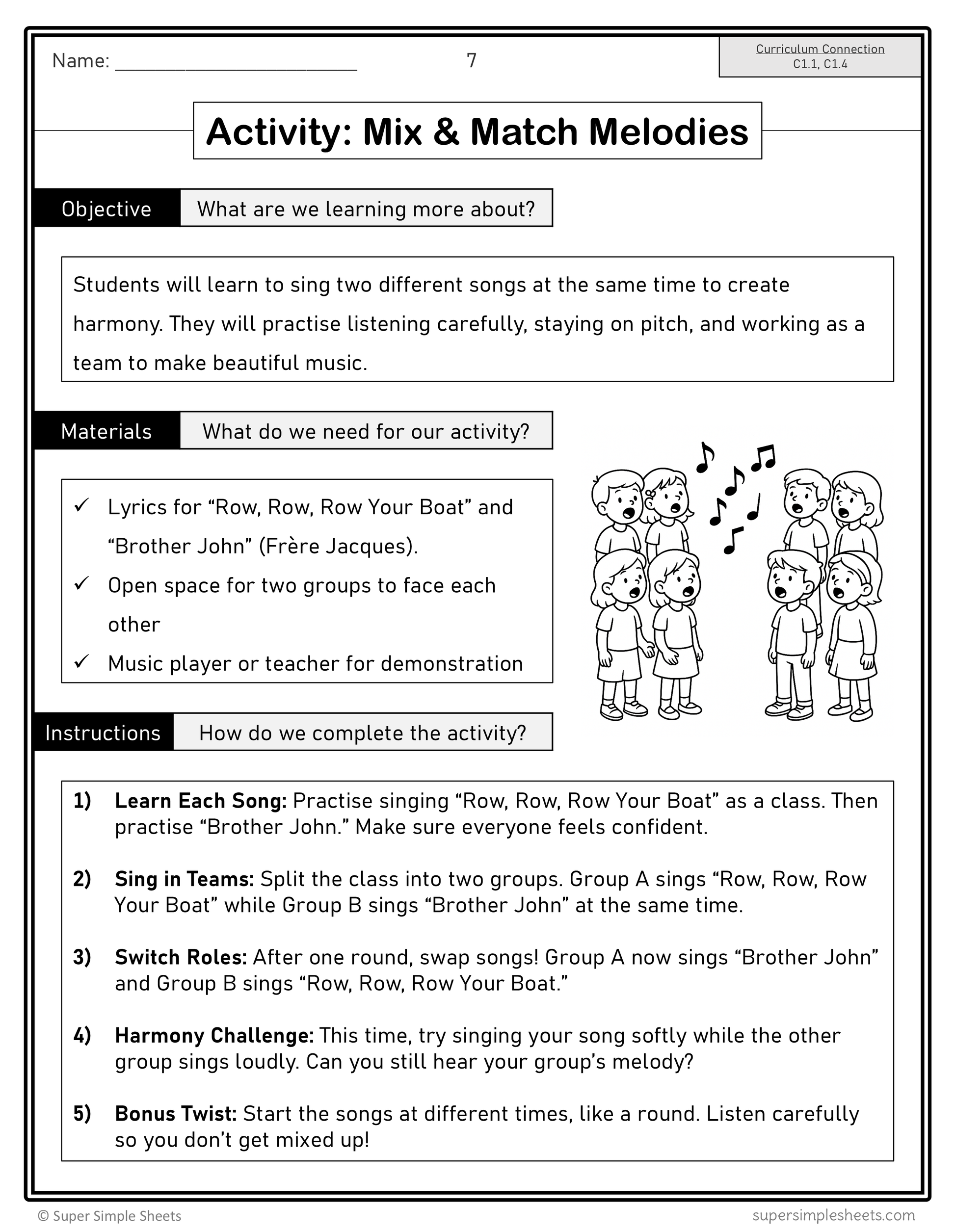 - C3: Exploring Forms and Cultural Contexts – identifying and performing music important to their lives and from other cultures.