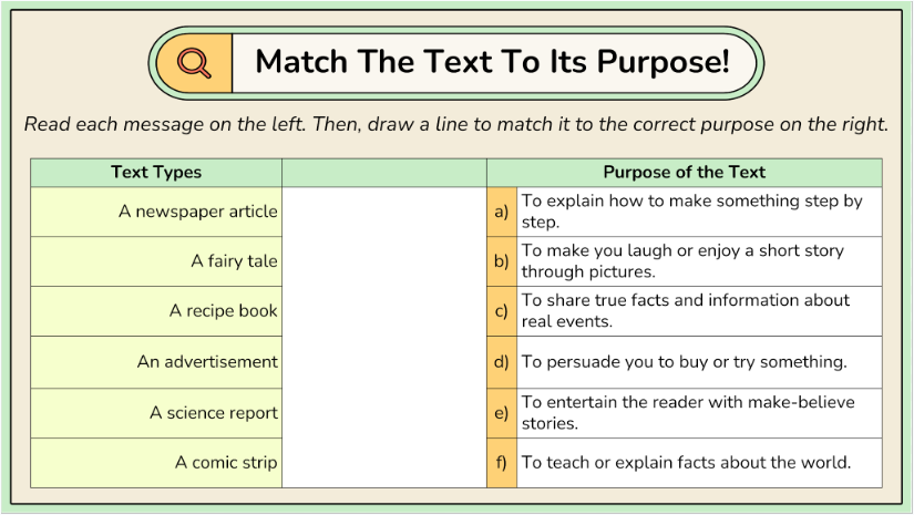 - Types of text forms – when to use each one (narratives, letters/emails, persuasive, comic strips, reports, etc.)