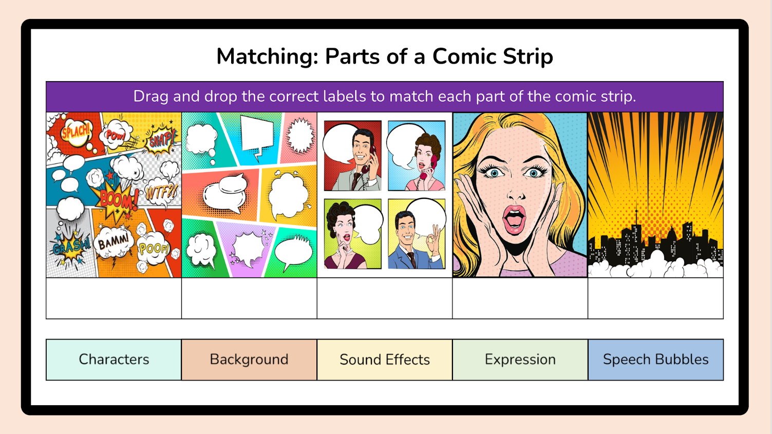 - Comic strips – onomatopoeia and illustrating graphic texts