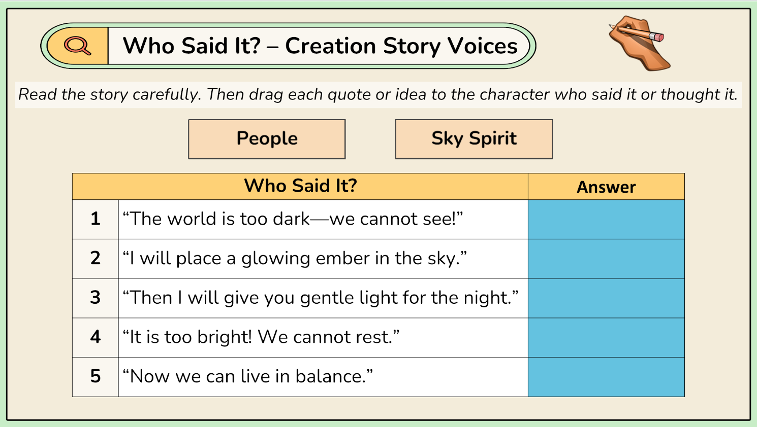 - Cultural text forms – creation stories and songs