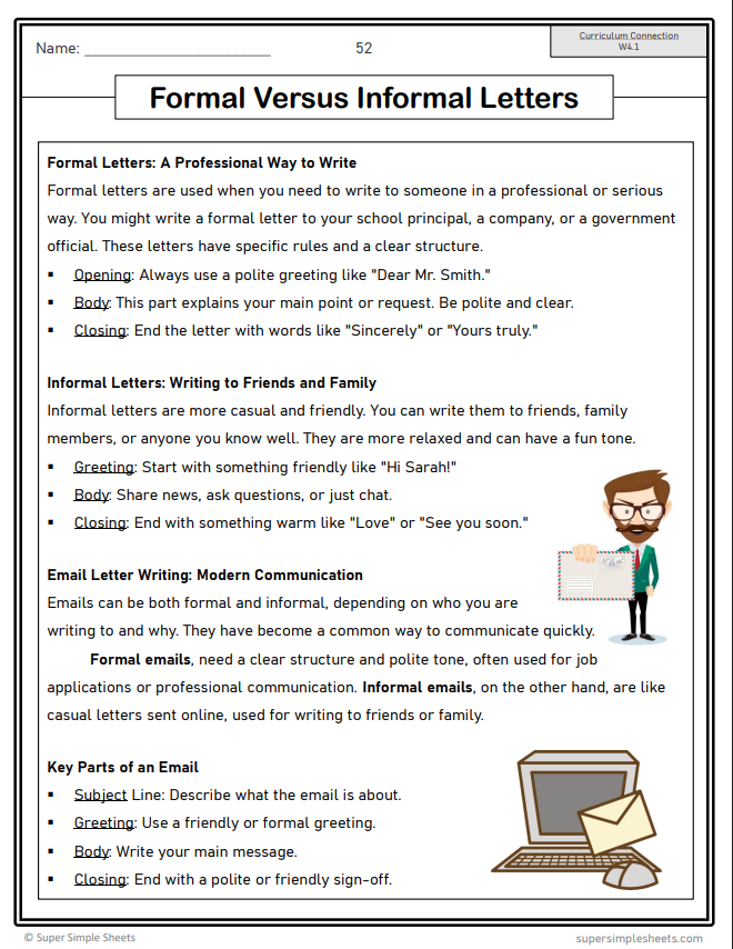 - Formal versus informal letter writing – voice in our writing