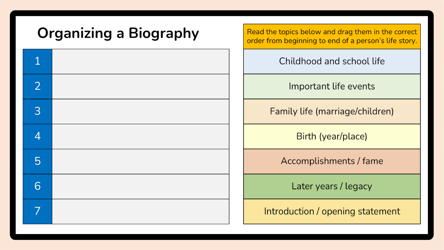 - Biographies – cross curricular connections: Hippocrates (human body). Einstein, and Chief Pontiac