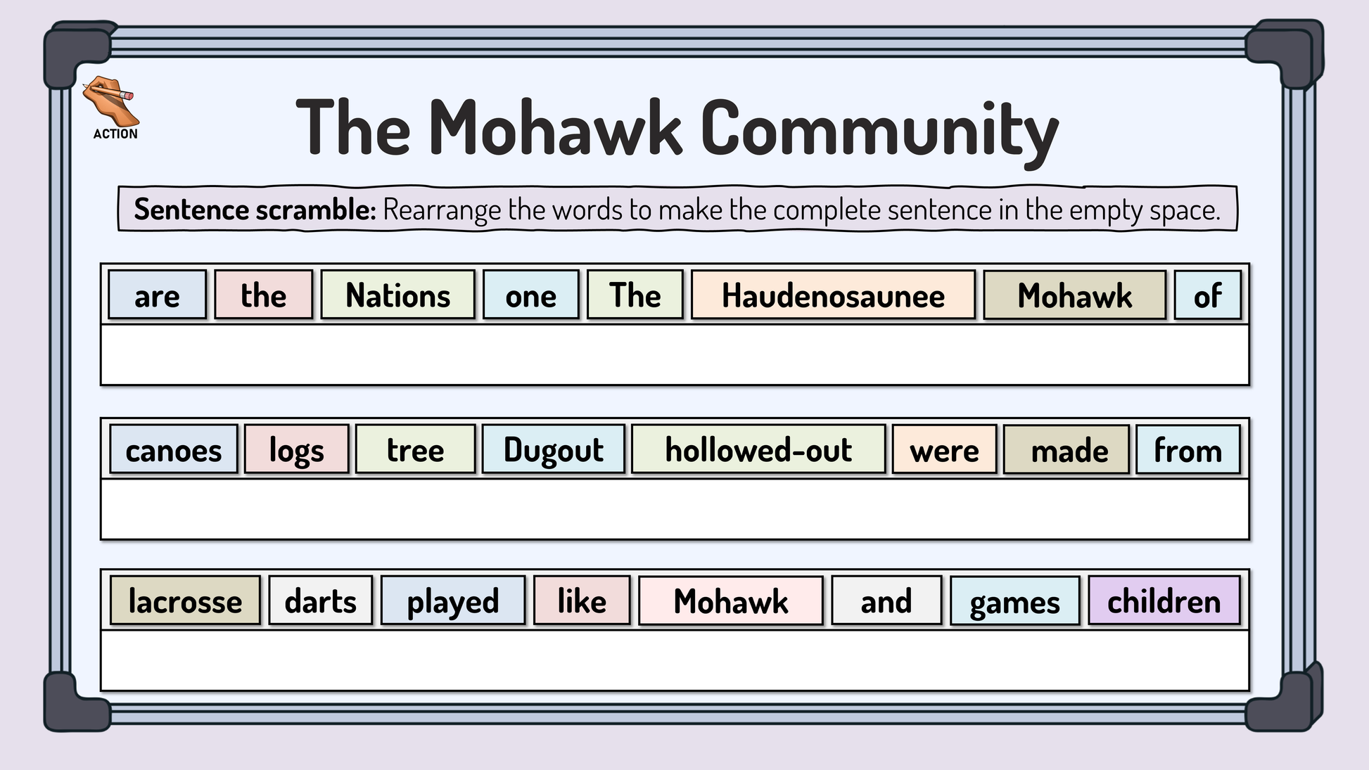 - Daily life and culture of the following First Nations – Algonkin, Wendat, Ojibwe, and Haudenosaunee