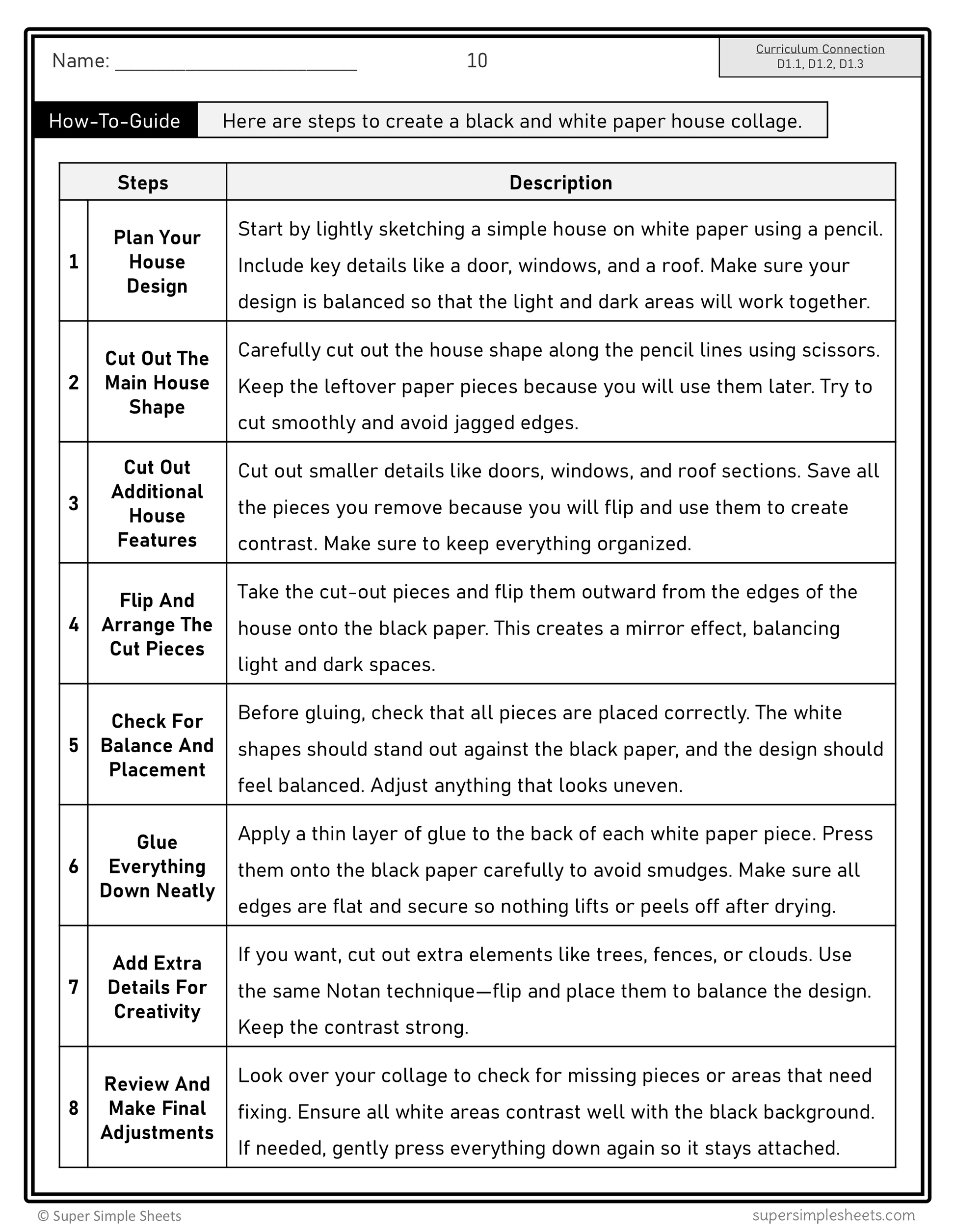 - Activity: Black and White Paper House Collage