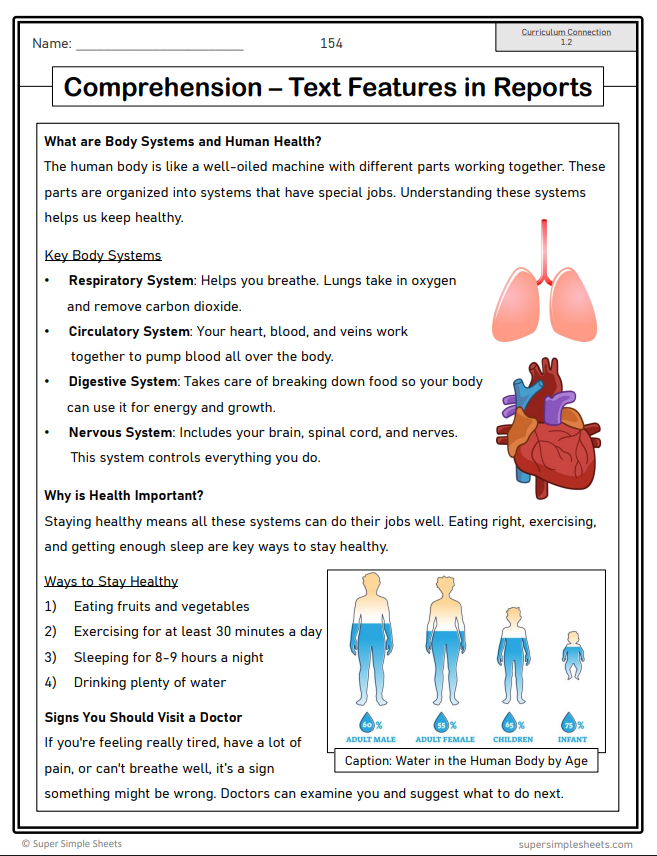 - Cross-curricular connections – text forms related to themes in science and social studies (government, human body)
