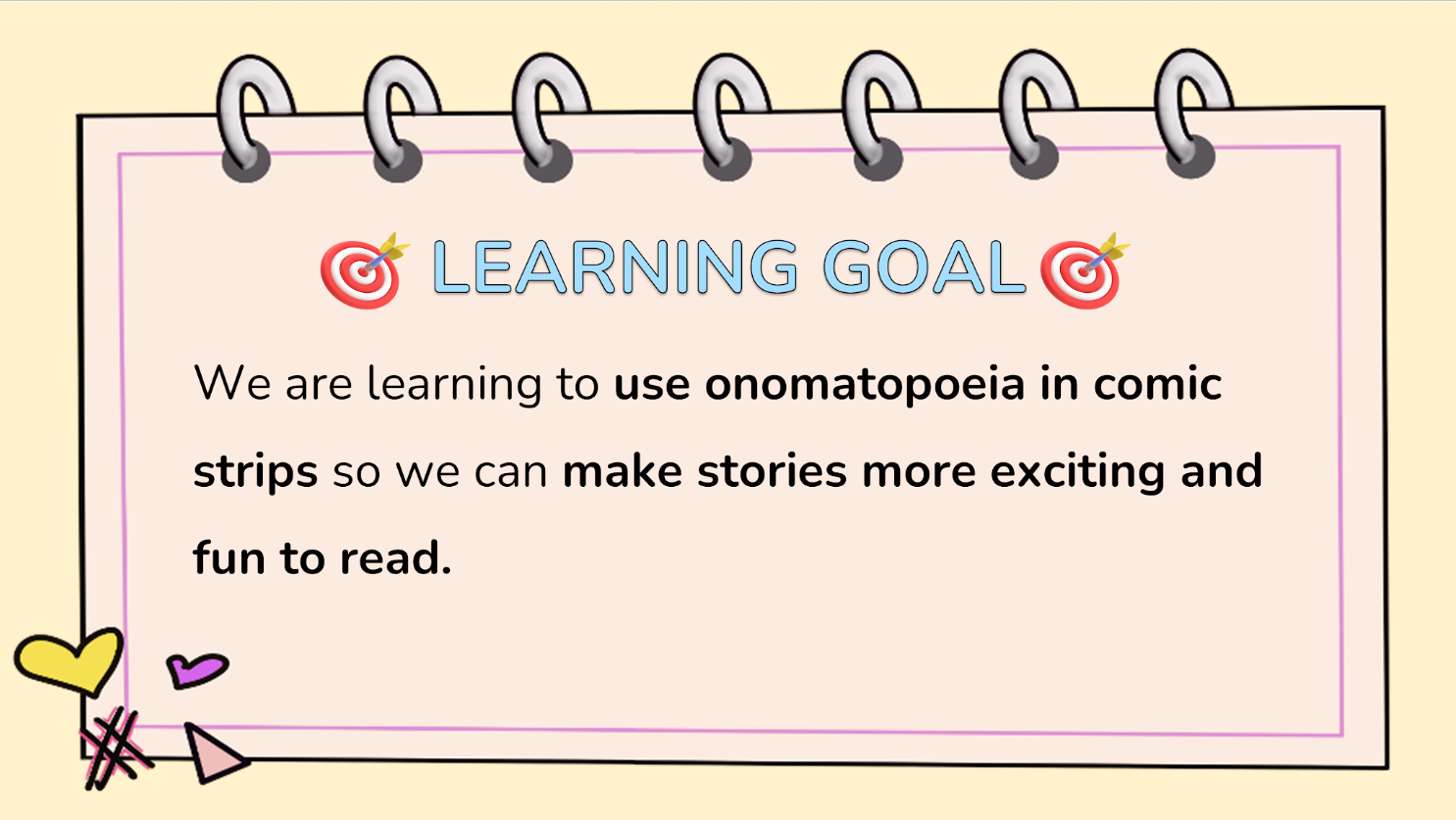 - Comic strips – onomatopoeia and illustrating graphic texts