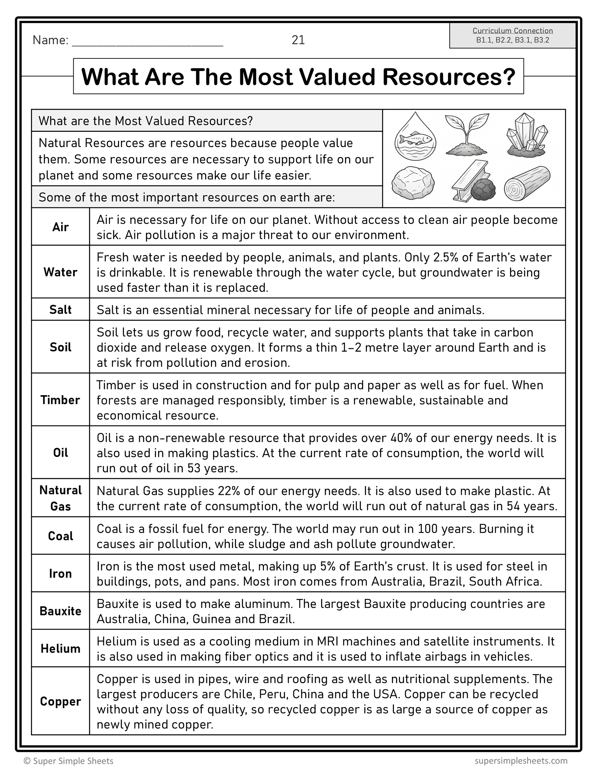 This resource covers all the expectations in the Grade 7, Ontario Social Studies Curriculum, Natural Resources Around the World - Use and Sustainability Strand.