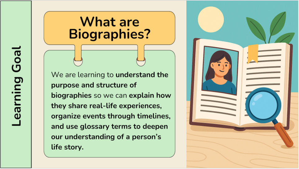 - How images, graphics, and visuals contribute to biographies