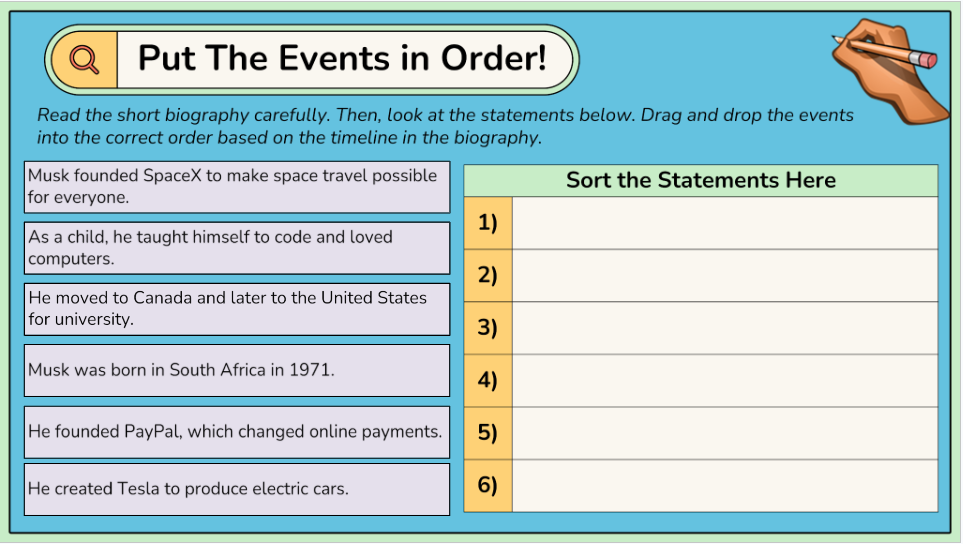 - Narratives – sequencing multiple plots in a story and explaining cause and effect