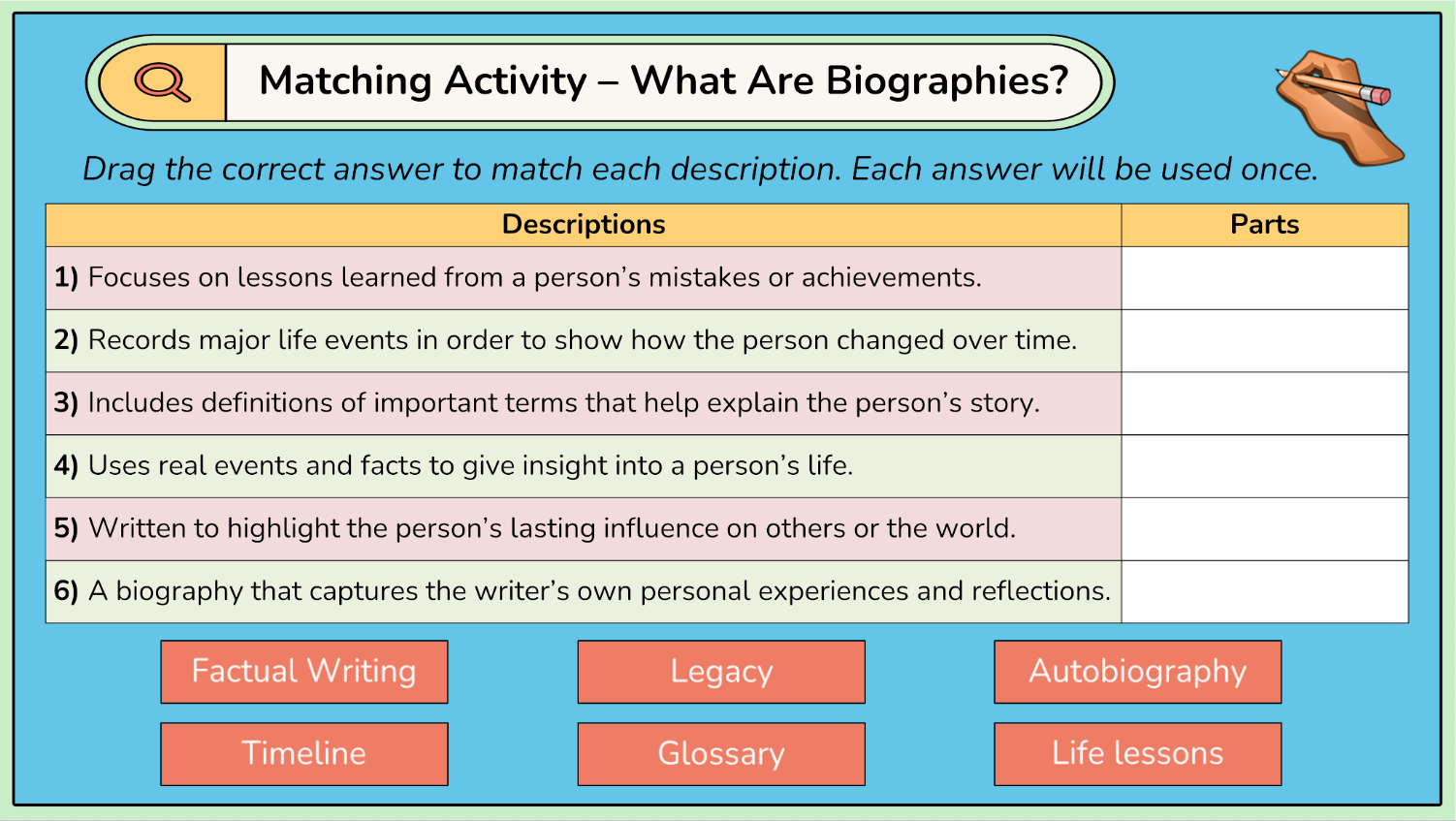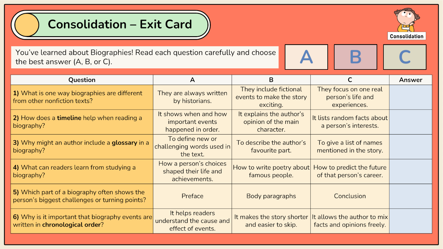 We’ve included a variety of activities, including independent reading responses, group activities, assignments, experiments, exemplars, and hands-on activities to keep your students engaged.