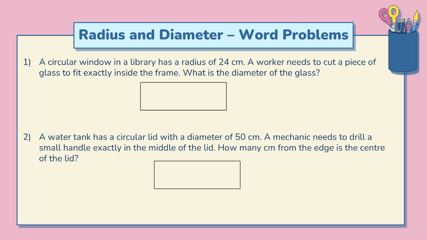 - Calculate the radius, diameter, circumference, and area of a circle