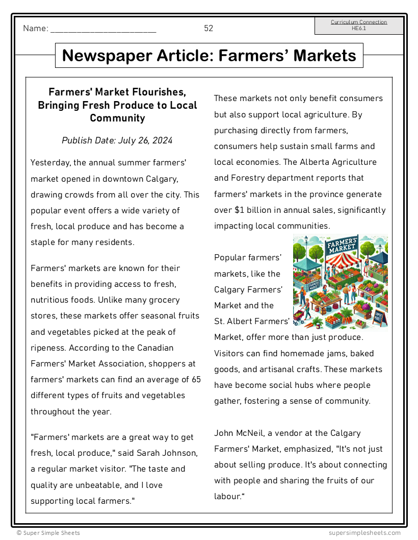 - Newspaper Article: Farmers’ Markets