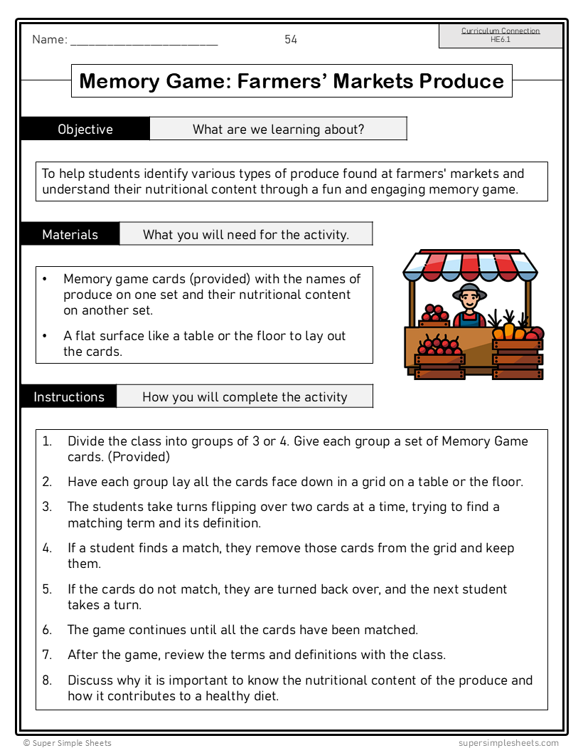 - Memory Game: Farmers’ Markets Produce