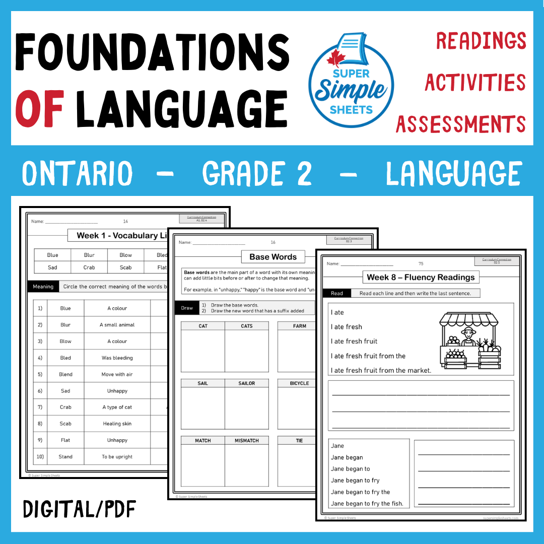 Grade 2 - New Ontario 2023 Language Curriculum – Foundations of Language Strand. This resource covers all expectations and learning goals in the Grade 2, 2023 Ontario Language Curriculum – Foundations of Language Strand.