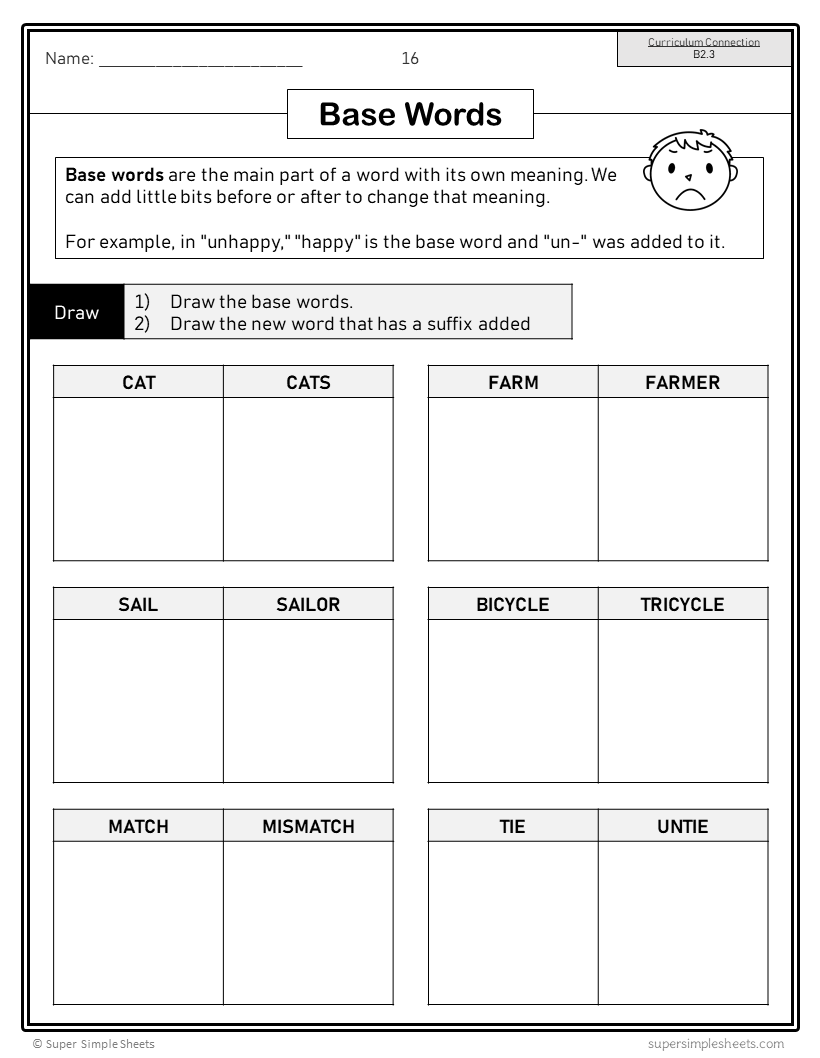 - Common Suffixes (e.g., -ing, -ed, -er)